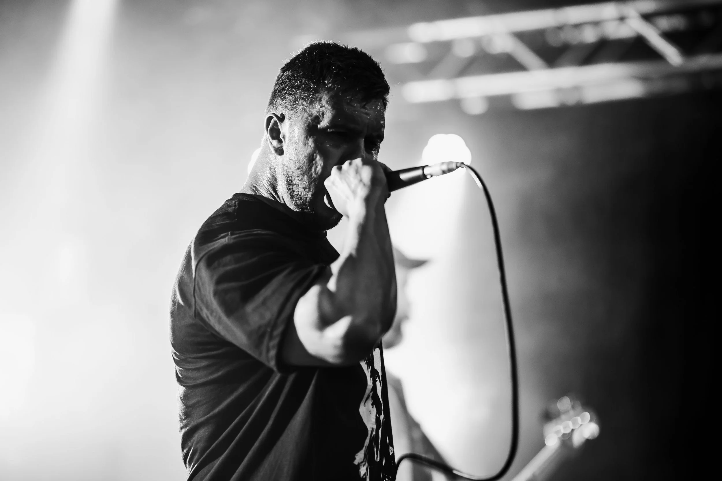 "Make a Deal" follows, building on that energy with a menacing groove. The guitar work here is a masterclass in layering, with multiple parts weaving together to form a rich, textured soundscape that supports the furious vocal delivery. The collaboration with Patrick Kindlon adds an extra layer of ferocity, showing the band’s commitment to pushing their sound forward.